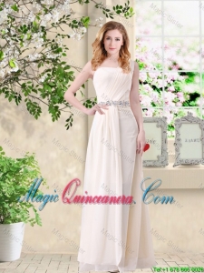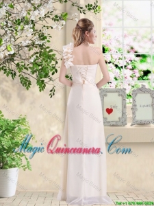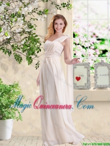 Cheap One Shoulder Hand Made Flowers Dama Dresses in Champagne