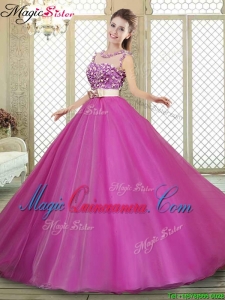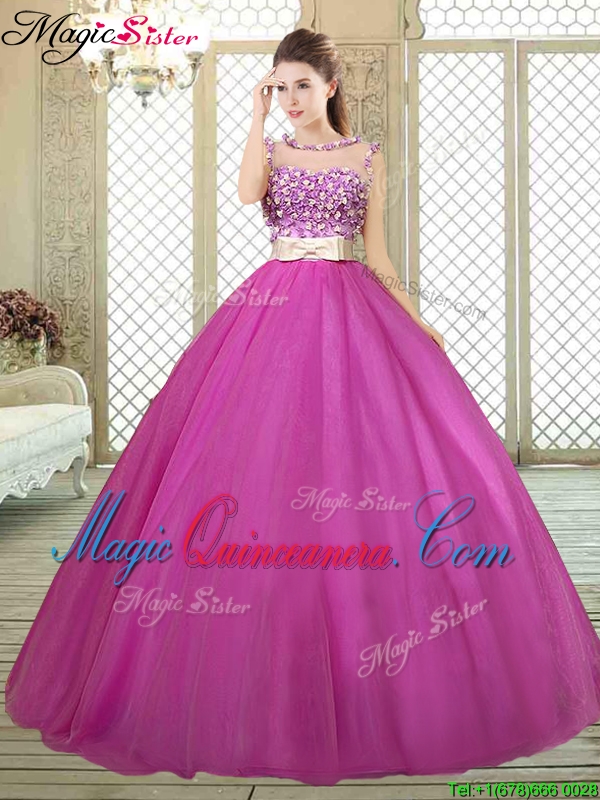 Cheap Scoop Quinceanera Dresses with Belt and Appliques