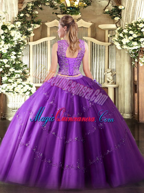 Cheap Scoop Sleeveless Tulle Sweet 16 Dresses Beading and Appliques Lace Up