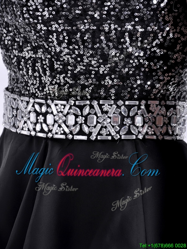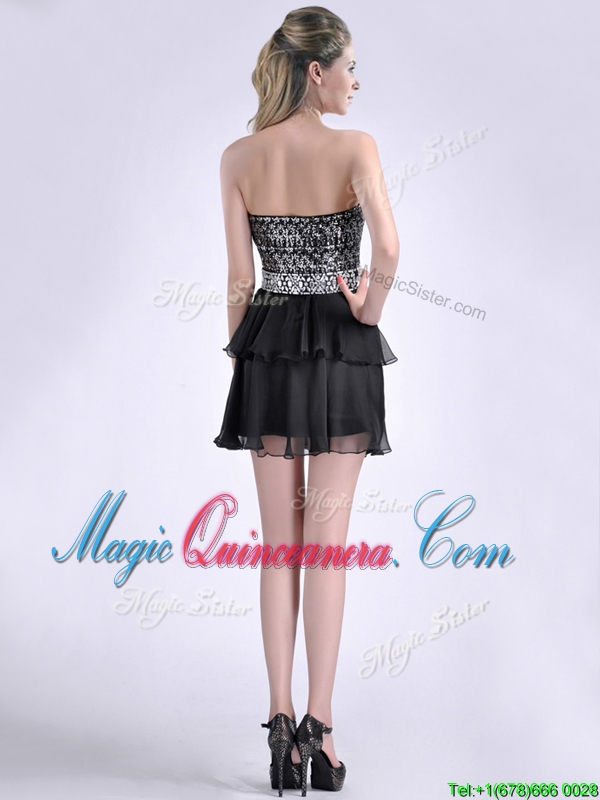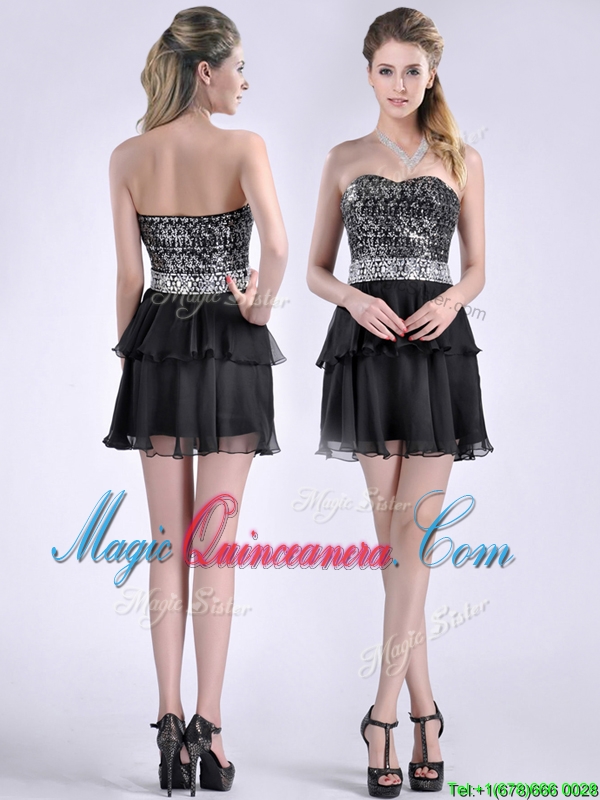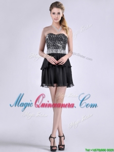 Cheap Sweetheart Black Short Dama Dress in Sequins and Chiffon