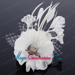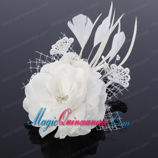 , Cheap White Feather and Tulle Fascinators with Pearl