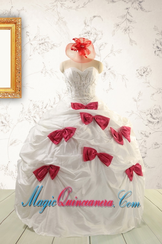 , Cheap White Quinceanera Dresses with Beading and Bowknots For 2015