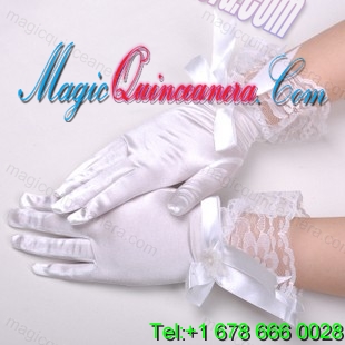 , Chic Lycra Fingertips Wrist Length Bridal Gloves With Bow
