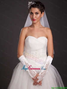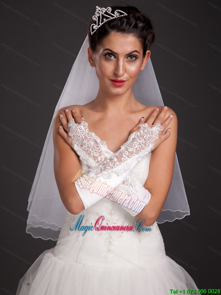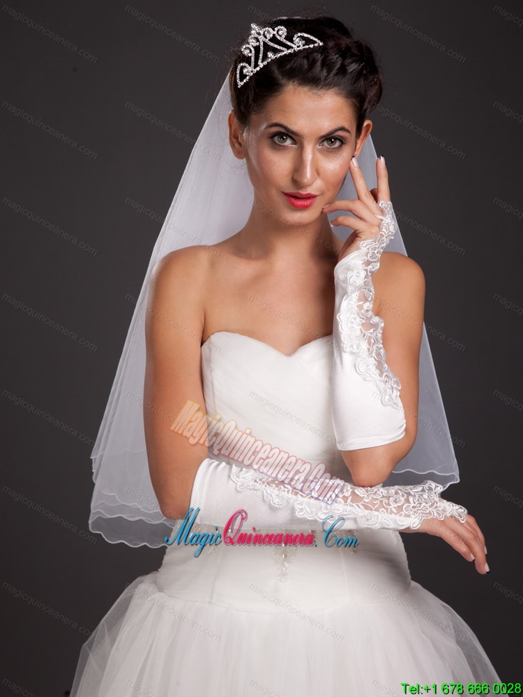 Chic Satin Elbow Length Fingerless Appliques Bridal Gloves