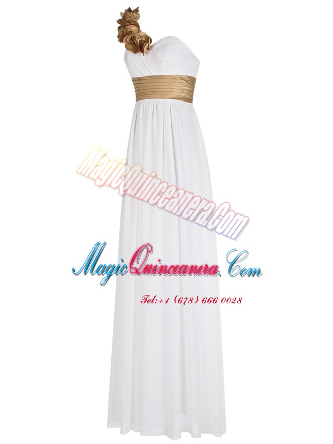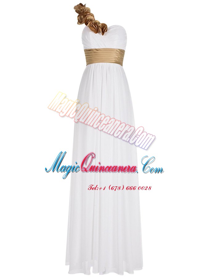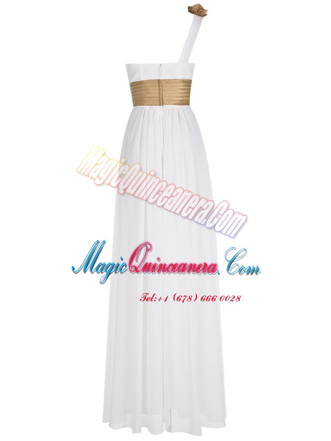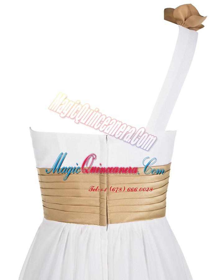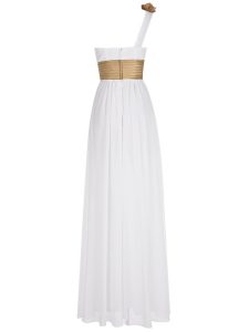 Chiffon One Shoulder Sleeveless Zipper Ruching Mother Of The Bride Dress in White
