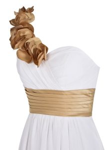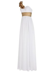 , Chiffon One Shoulder Sleeveless Zipper Ruching Mother Of The Bride Dress in White