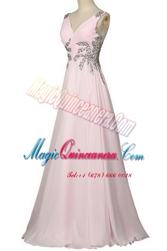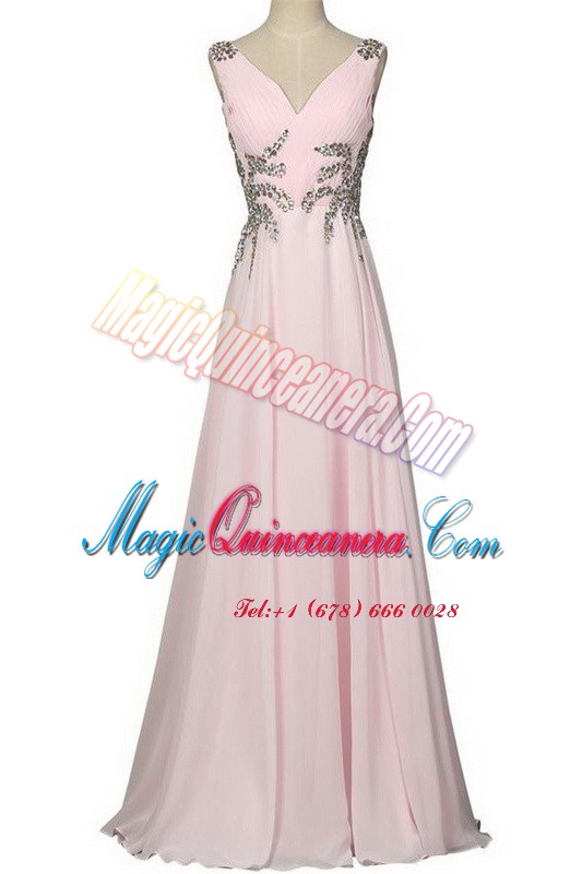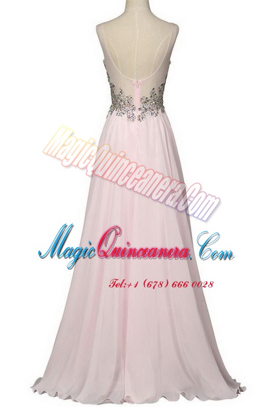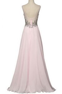 Chiffon Sleeveless With Train Homecoming Dress Brush Train and Beading