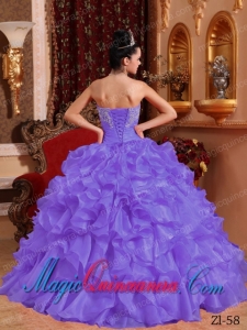 Classic Quinceanera Gowns In Purple Ball Gown With Strapless Organza Beading and Appliques