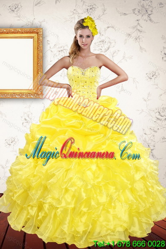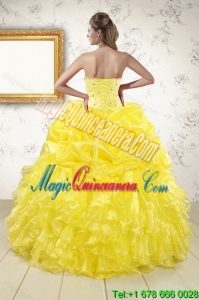 Classical 2015 Yellow Sweet 15 Quince Dresses with Beading and Ruffles