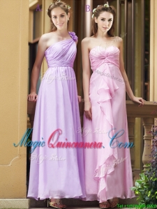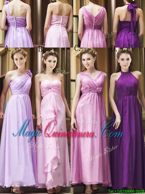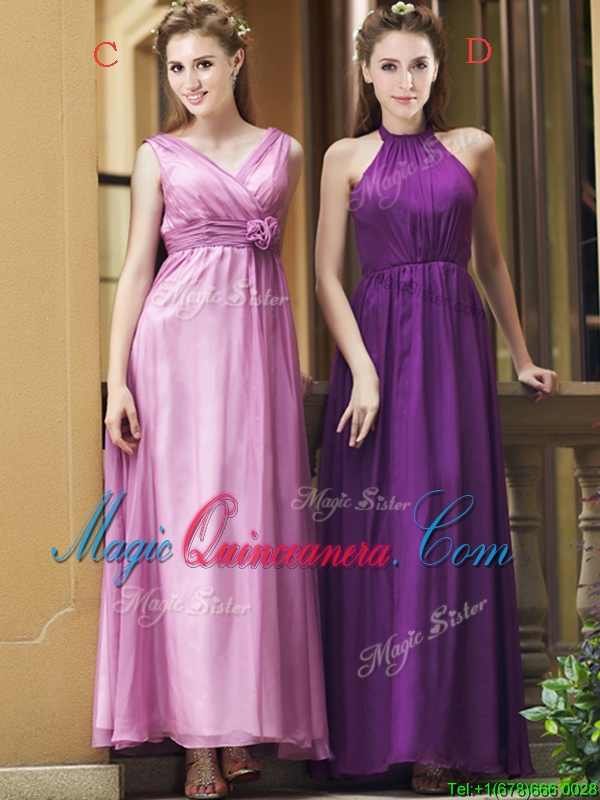 , Classical Empire Ruched Chiffon Zipper Up Dama Dress in Ankle Length