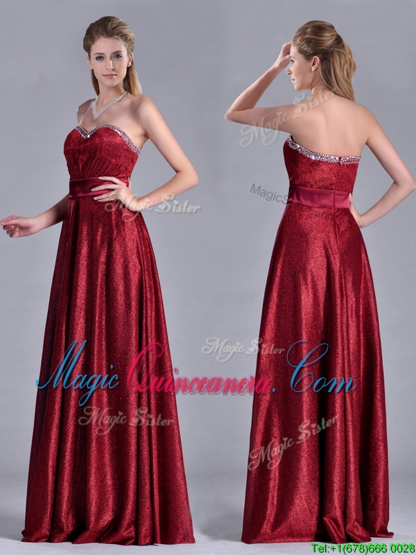 Classical Empire Sweetheart Wine Red Dama Dress with Beaded Top