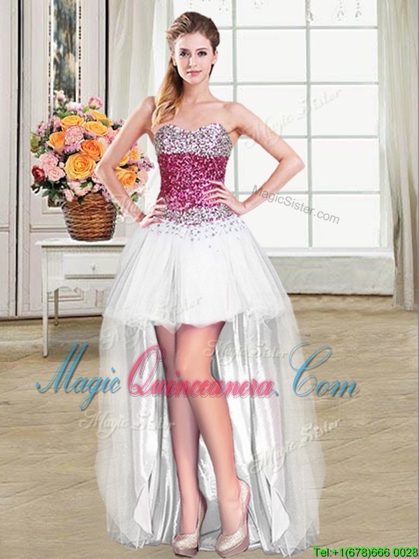 , Classical Four Piece Floor Length White Sweet 16 Dresses Tulle Sleeveless Beading