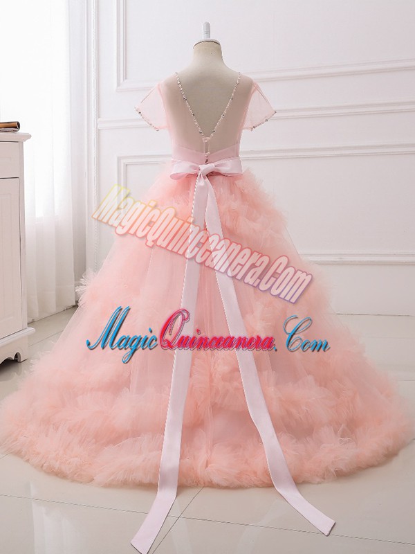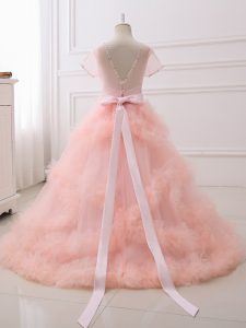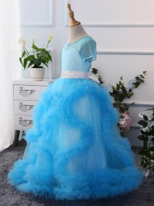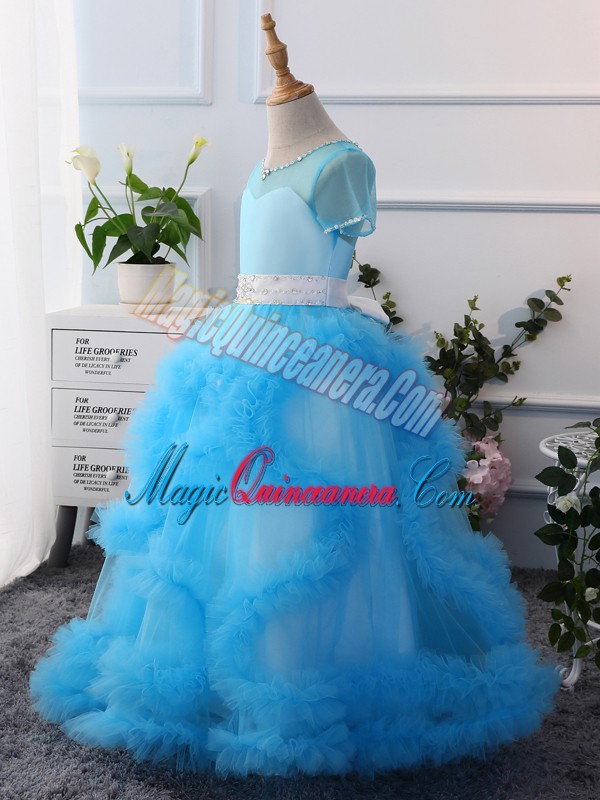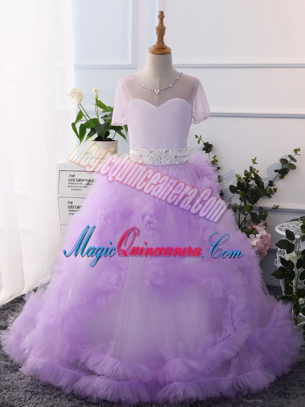 Classical Lavender Kids Formal Wear Wedding Party with Beading Scoop Short Sleeves Clasp Handle