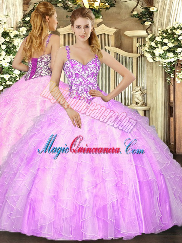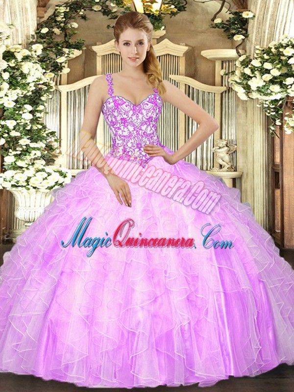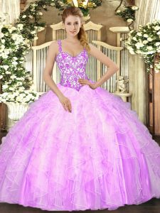 Classical Mermaid 15th Birthday Dress Lilac Straps Organza Sleeveless Floor Length Lace Up