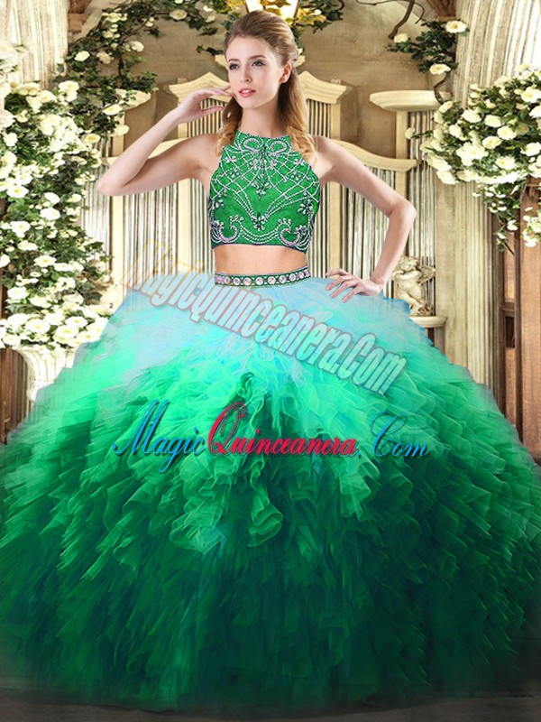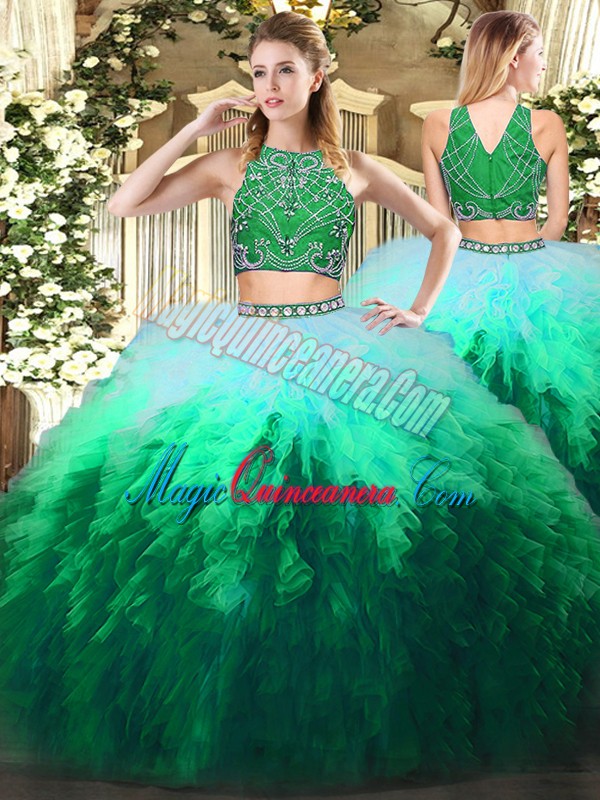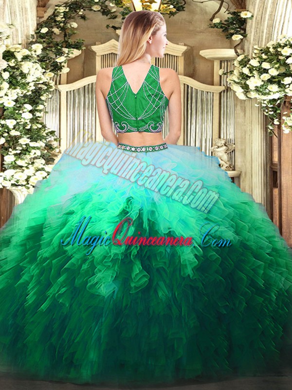 Classical Multi-color Sleeveless Floor Length Beading and Ruffles Zipper Quinceanera Gowns - Magic Quinceanera