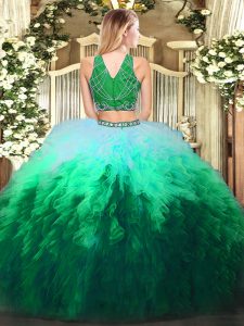 Classical Multi-color Sleeveless Floor Length Beading and Ruffles Zipper Quinceanera Gowns