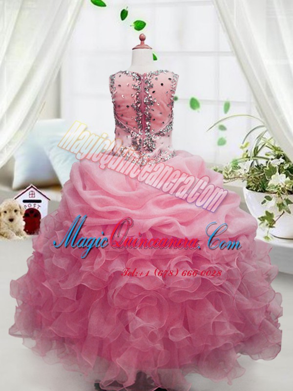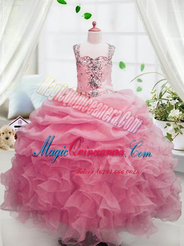 Excellent Pick Ups Square Sleeveless Zipper Child Pageant Dress Pink Organza