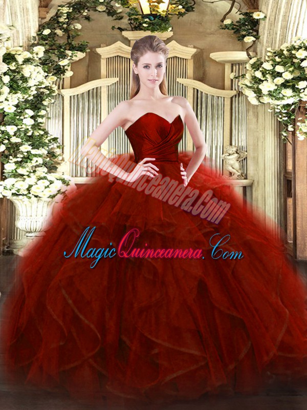 Classical Sleeveless Floor Length Ruffles Zipper Ball Gown Prom Dress with Wine Red