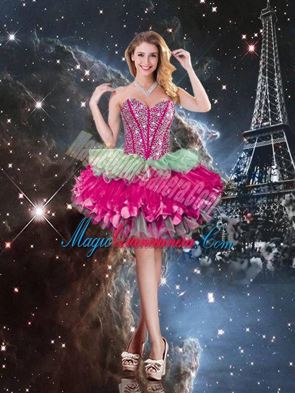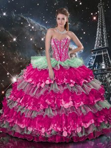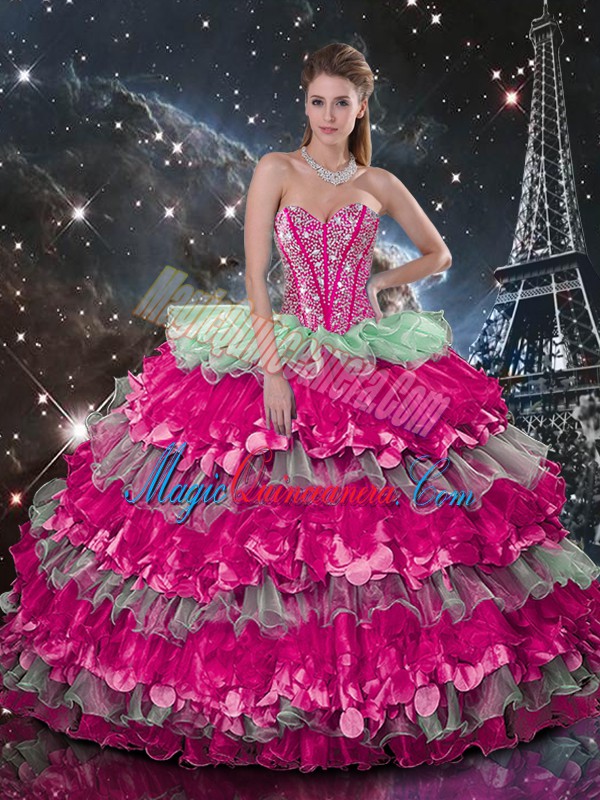Classical Sleeveless Lace Up Floor Length Beading and Ruffles and Ruffled Layers Vestidos de Quinceanera