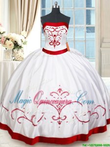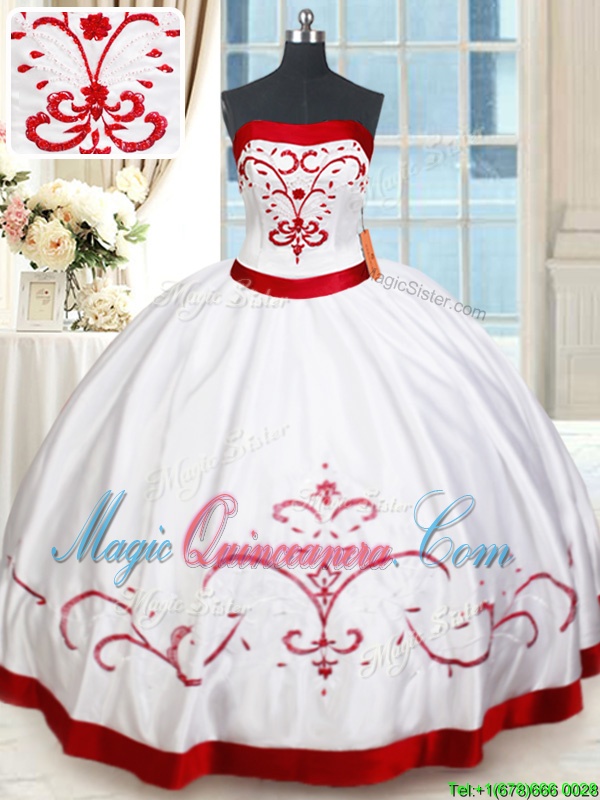 Classical Strapless Sleeveless Satin Sweet 16 Dresses Beading and Embroidery Lace Up