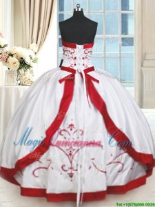 , Classical Strapless Sleeveless Satin Sweet 16 Dresses Beading and Embroidery Lace Up