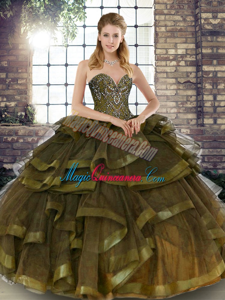 Classical Sweetheart Sleeveless Lace Up Ball Gown Prom Dress Olive Green Tulle