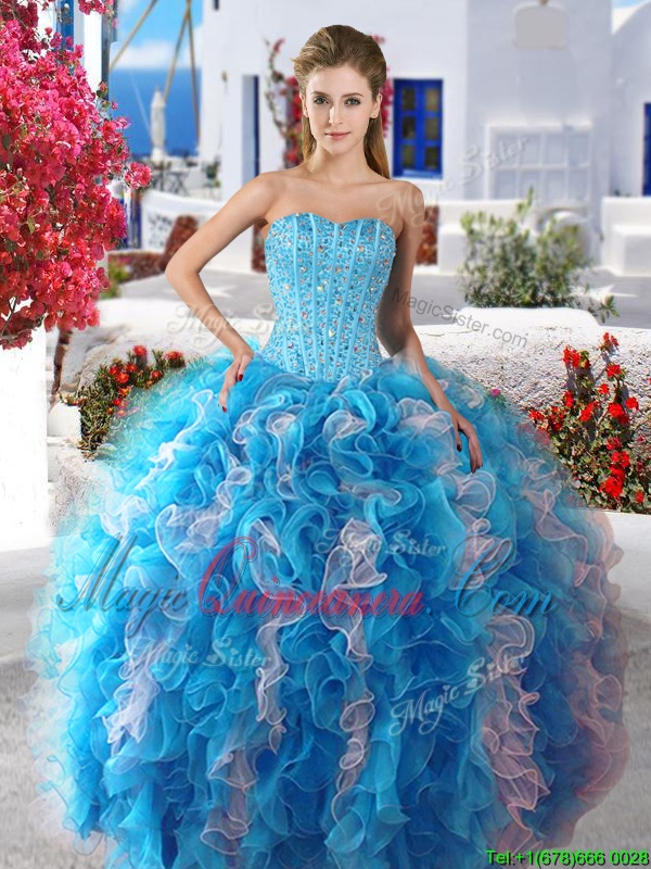 Stunning Three Piece Sweetheart Sleeveless Organza Quinceanera Dress Beading Lace Up