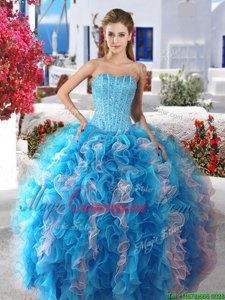 High Class Four Piece Floor Length Blue Quinceanera Dress Sweetheart Sleeveless Lace Up