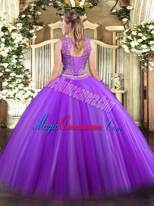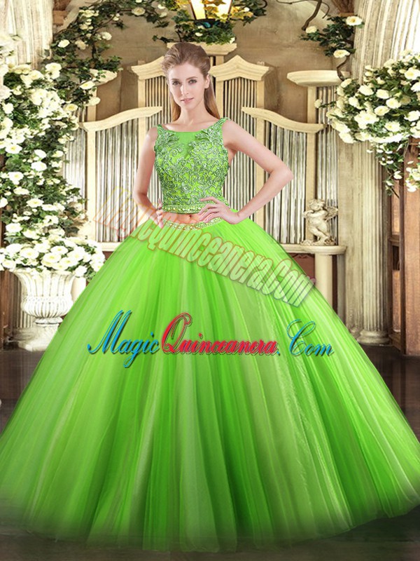 , Classical Tulle Lace Up Sweet 16 Dress Sleeveless Floor Length Beading