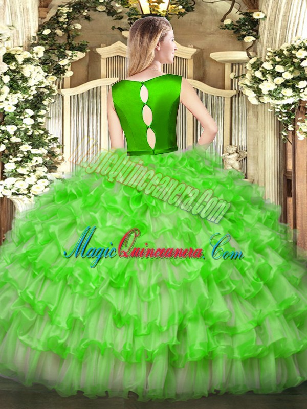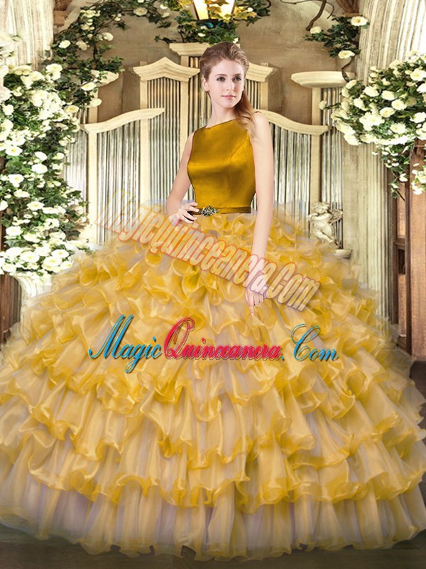 Clearance Gold Ball Gowns Ruffled Layers Sweet 16 Dress Clasp Handle Organza Sleeveless Floor Length