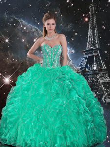 Clearance Organza Sweetheart Sleeveless Lace Up Beading and Ruffles Quinceanera Gown in Turquoise