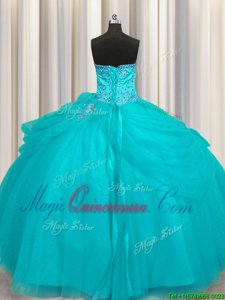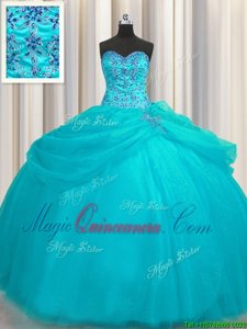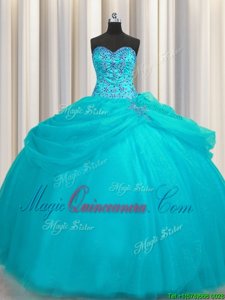 Clearance Puffy Skirt Aqua Blue Lace Up Sweetheart Beading Quinceanera Dress Organza Sleeveless