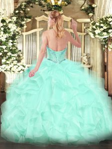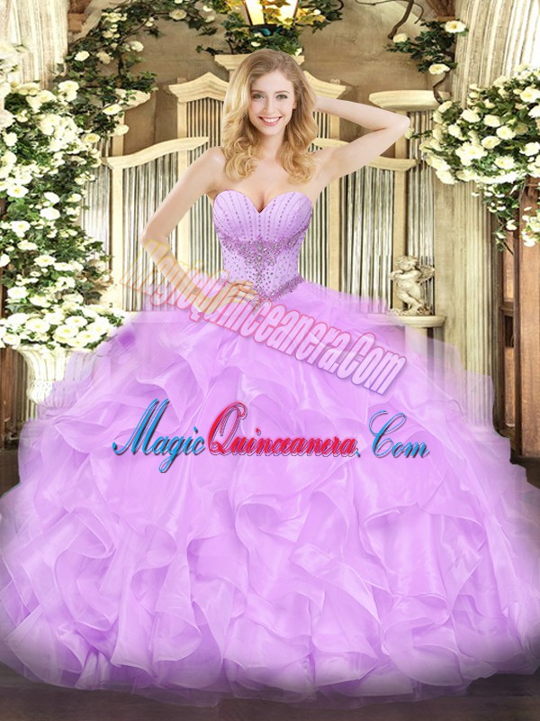 Clearance Sleeveless Organza Floor Length Lace Up Quinceanera Gown in Lavender with Beading and Ruffles