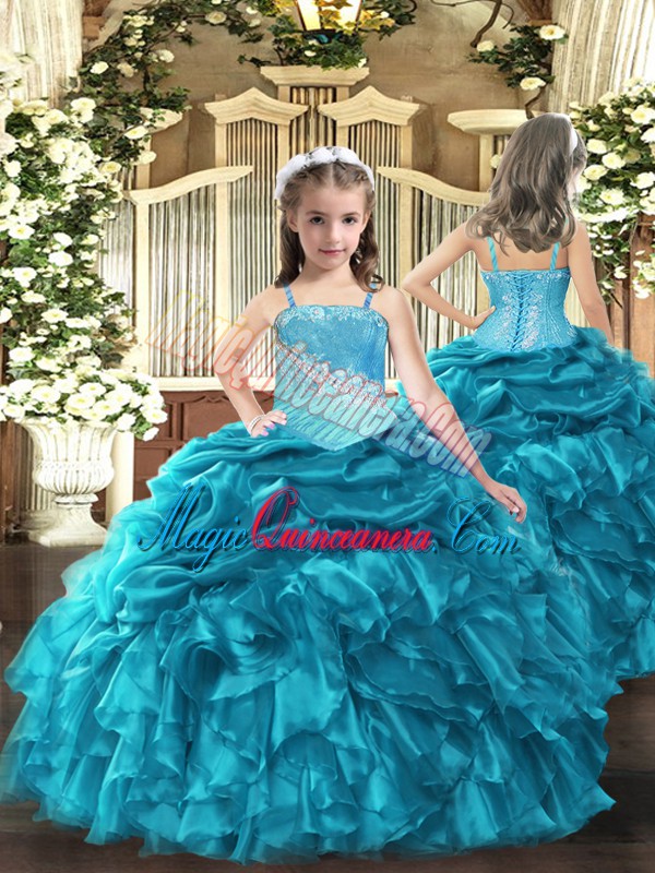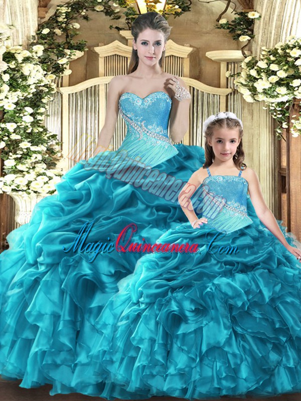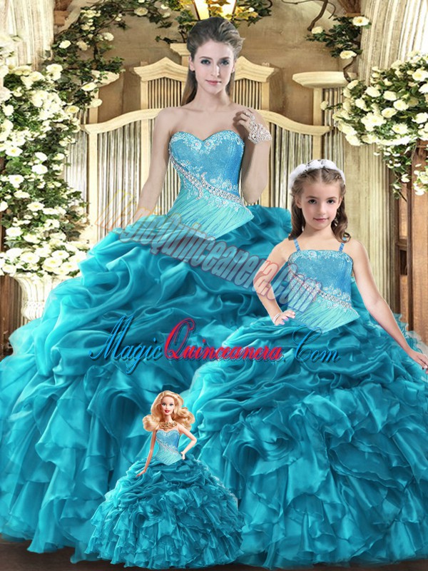 Clearance Sweetheart Sleeveless Lace Up Quinceanera Dresses Teal Tulle
