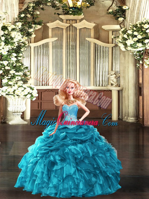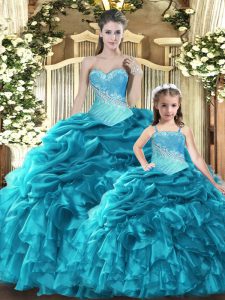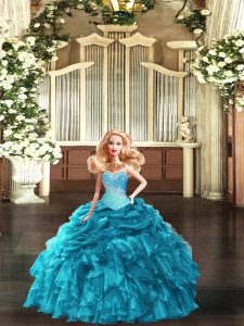 , Clearance Sweetheart Sleeveless Lace Up Quinceanera Dresses Teal Tulle
