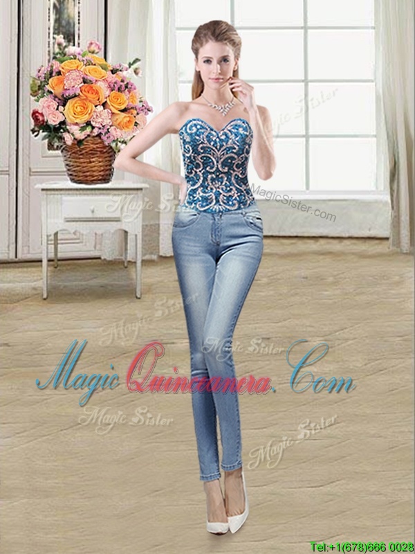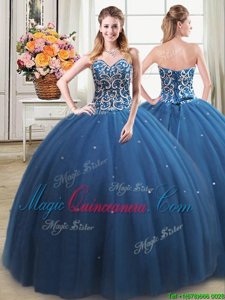 Clearance Three Piece Sleeveless Tulle Floor Length Lace Up Quinceanera Gown in Teal for with Beading