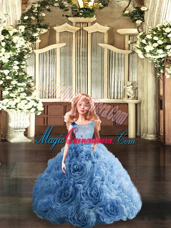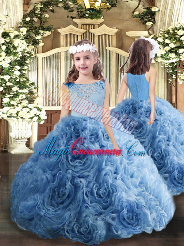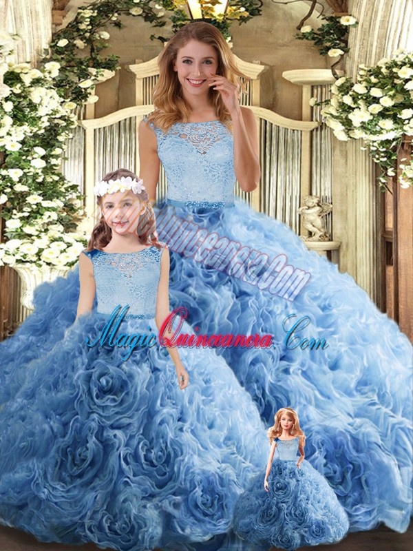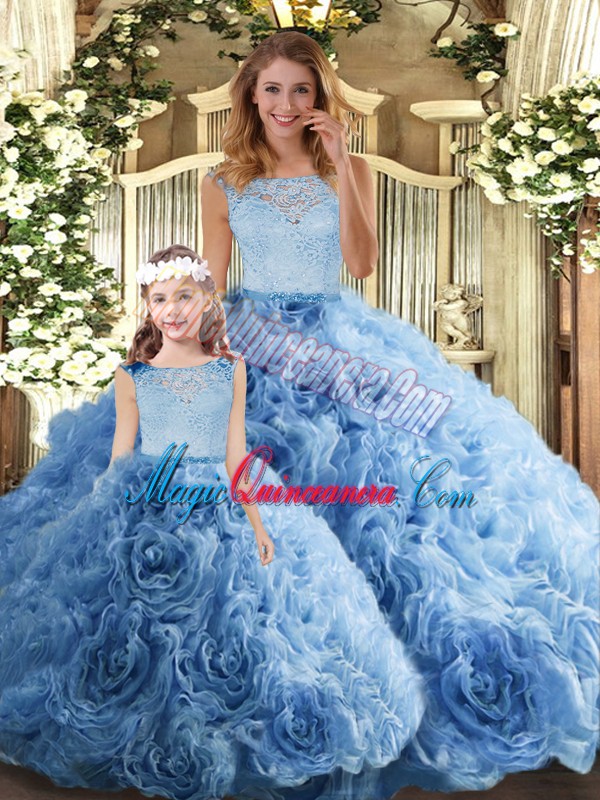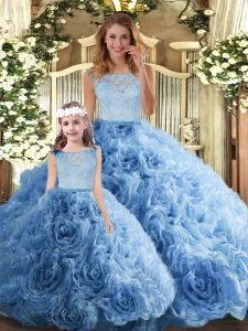 , Colorful Baby Blue Scoop Zipper Lace Sweet 16 Dress Sleeveless