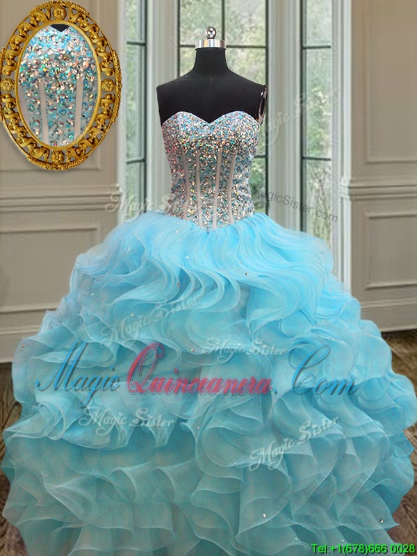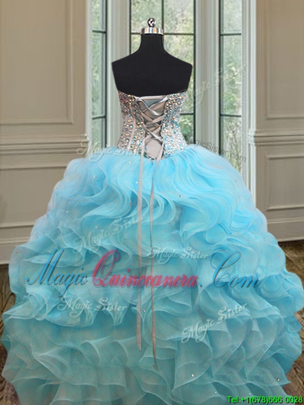 Colorful Baby Blue Sweetheart Neckline Beading and Ruffles Sweet 16 Dresses Sleeveless Lace Up