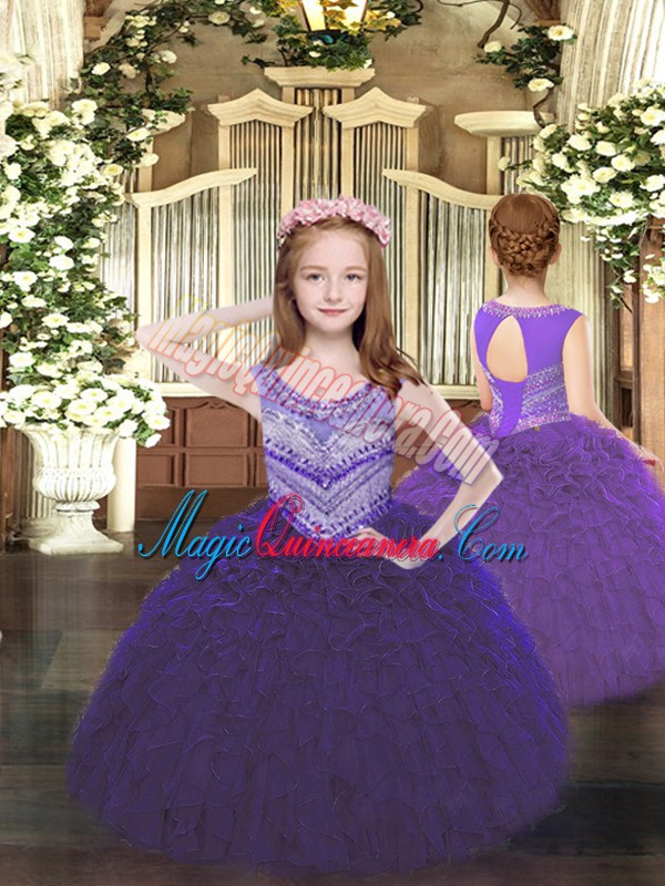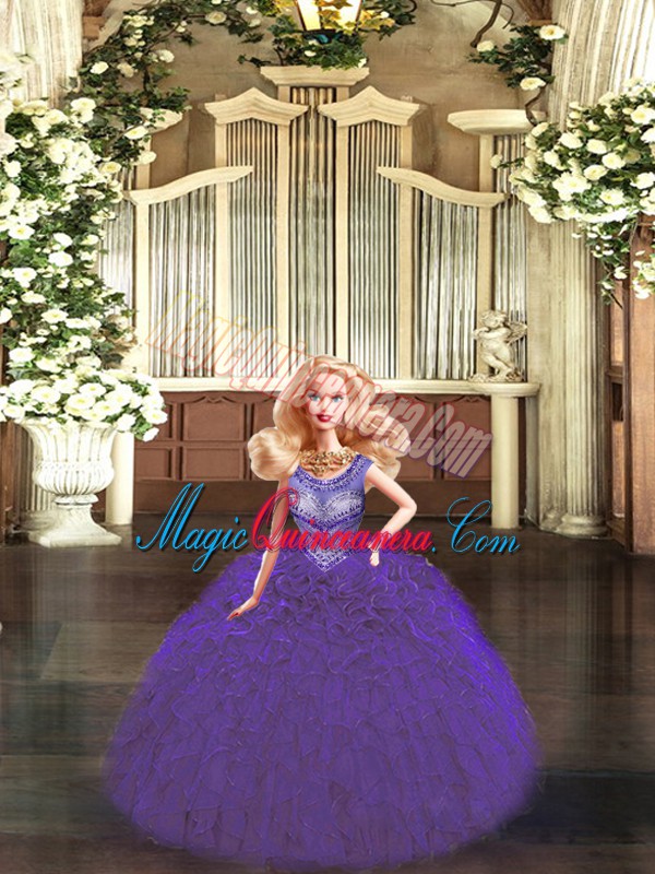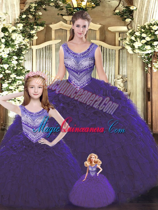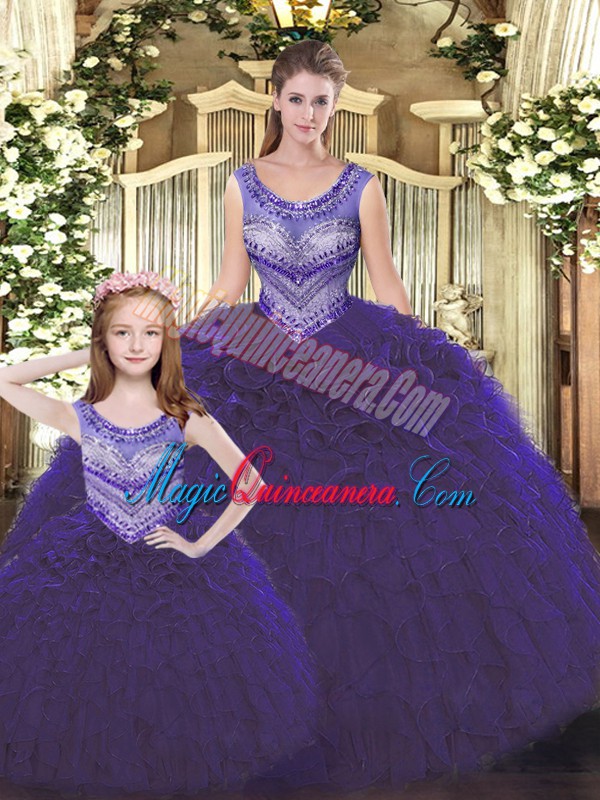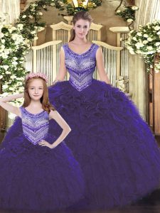Colorful Beading and Ruffles Quinceanera Dresses Dark Purple Lace Up Sleeveless Floor Length