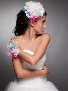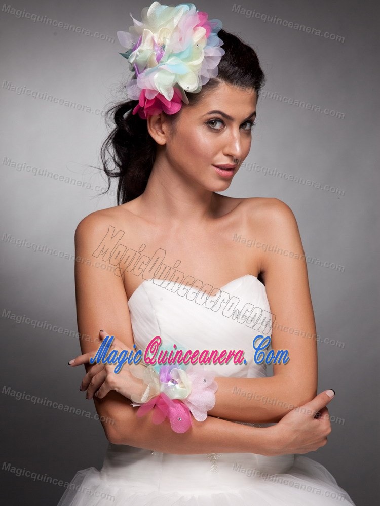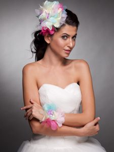, Colorful Organza Hand Made Flower Headpieces Wrist Corsage