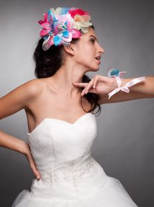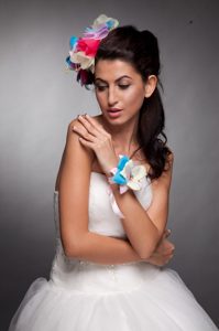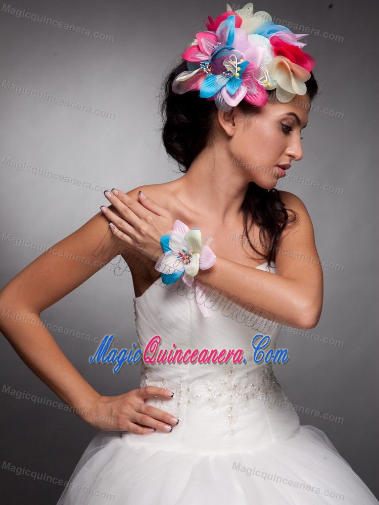 , Colorful Organza Hand Made Flowers Headpieces and Wrist Corsage