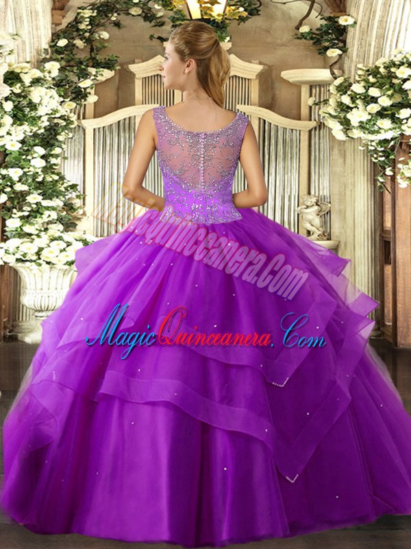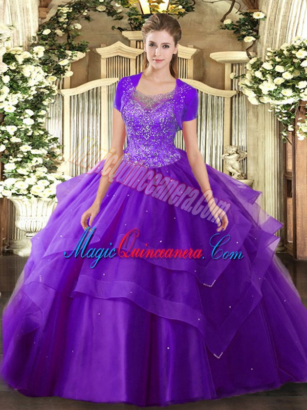 Colorful Purple Sweet 16 Dress Military Ball and Sweet 16 and Quinceanera with Beading and Ruffles Scoop Sleeveless Clasp Handle