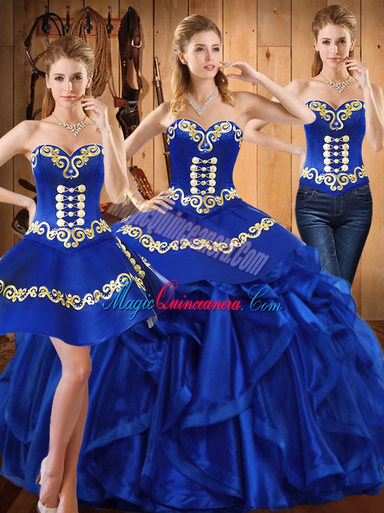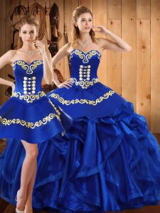 Colorful Royal Blue Sleeveless Organza Lace Up Quinceanera Gown for Military Ball and Sweet 16 and Quinceanera