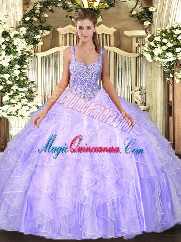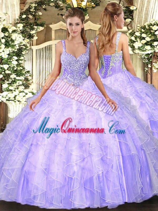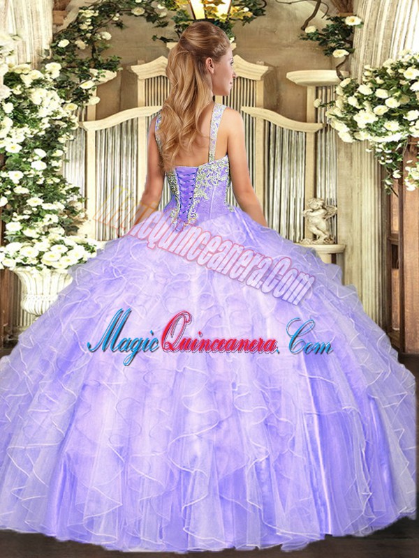 , Colorful Sleeveless Lace Up Floor Length Beading and Ruffles 15th Birthday Dress