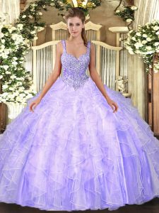 Colorful Sleeveless Lace Up Floor Length Beading and Ruffles 15th Birthday Dress