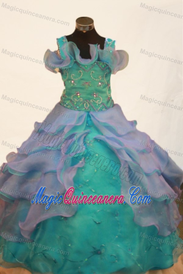 customized girl pageant dresses with zipper, Colorful Straps Ball Gown Little Girl Pageant Dress Beading Ruffles