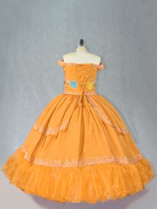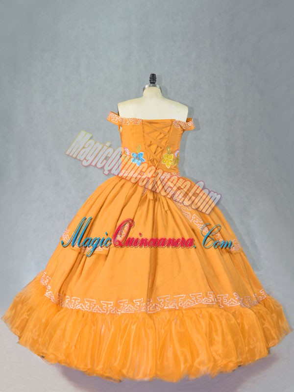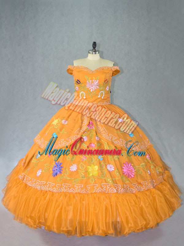 , Comfortable Embroidery Quince Ball Gowns Gold Lace Up Sleeveless Floor Length