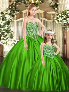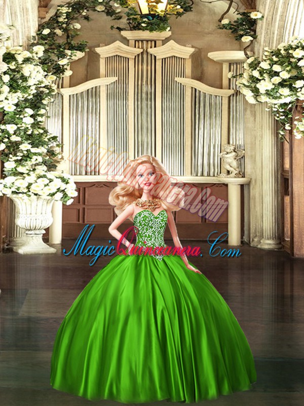 Comfortable Organza Sweetheart Sleeveless Lace Up Beading Ball Gown Prom Dress in Green