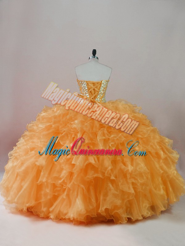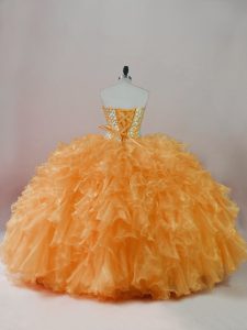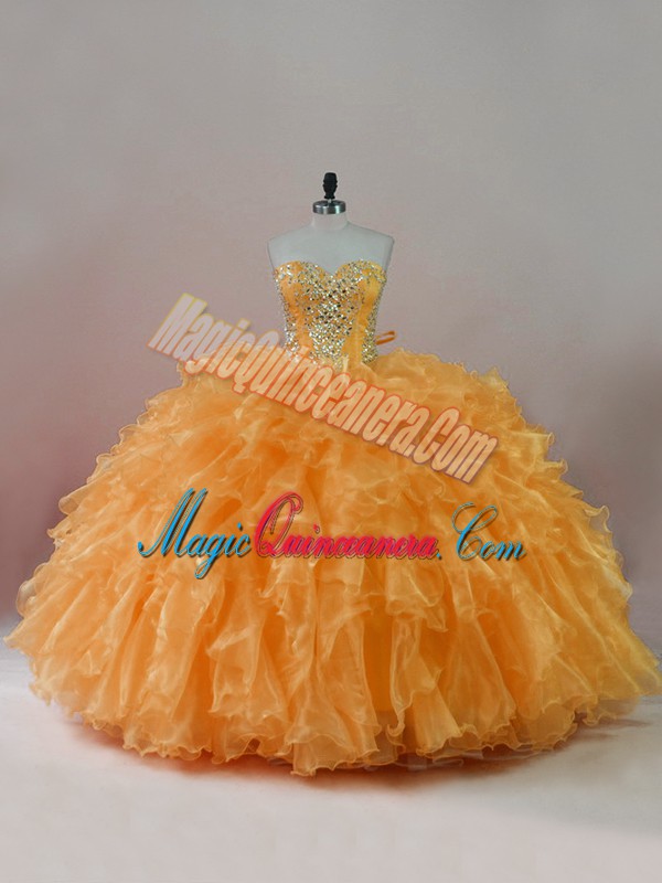 Comfortable Sleeveless Beading and Ruffles Lace Up Quinceanera Gown