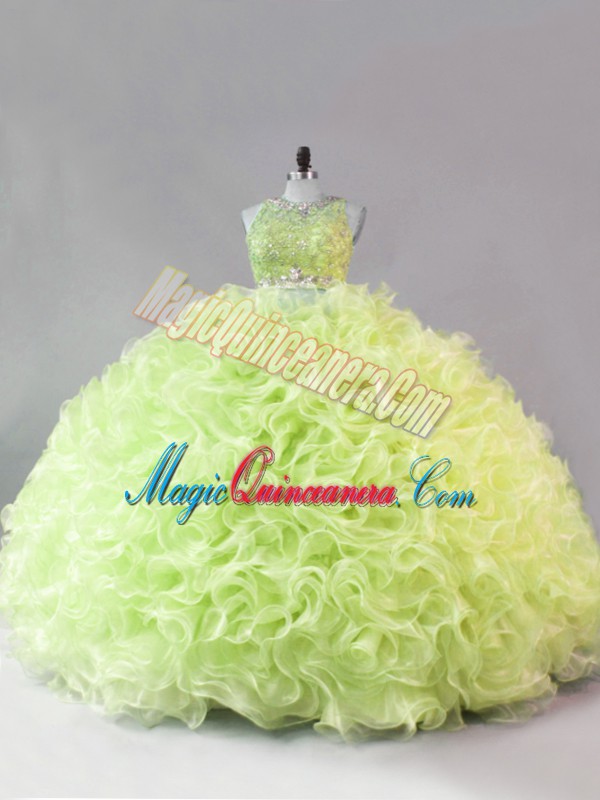 Comfortable Sleeveless Beading and Ruffles Zipper Quince Ball Gowns